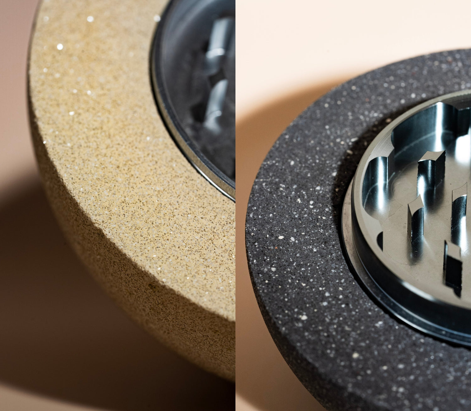 Die Mischung aus Gewicht, Textur und reduzierter Form macht den Grinder zu einem skulpturalen Objekt, das zugleich funktional und langlebig ist.